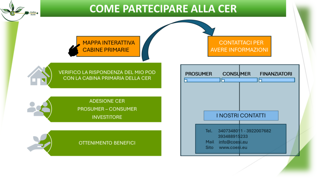 Cittadini, piccole e medie imprese, enti territoriali o autorità locali possono UNIRSI PER PRODURRE E CONDIVIDERE ENERGIA derivante da fonti rinnovabili, formando una Comunità Energetica